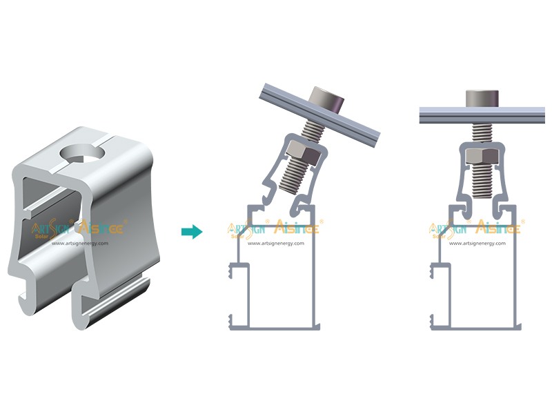 — A porca N e o parafuso T são usados para a ranhura do trilho CR, o que torna a instalação das braçadeiras solares mais rápida e ágil.
